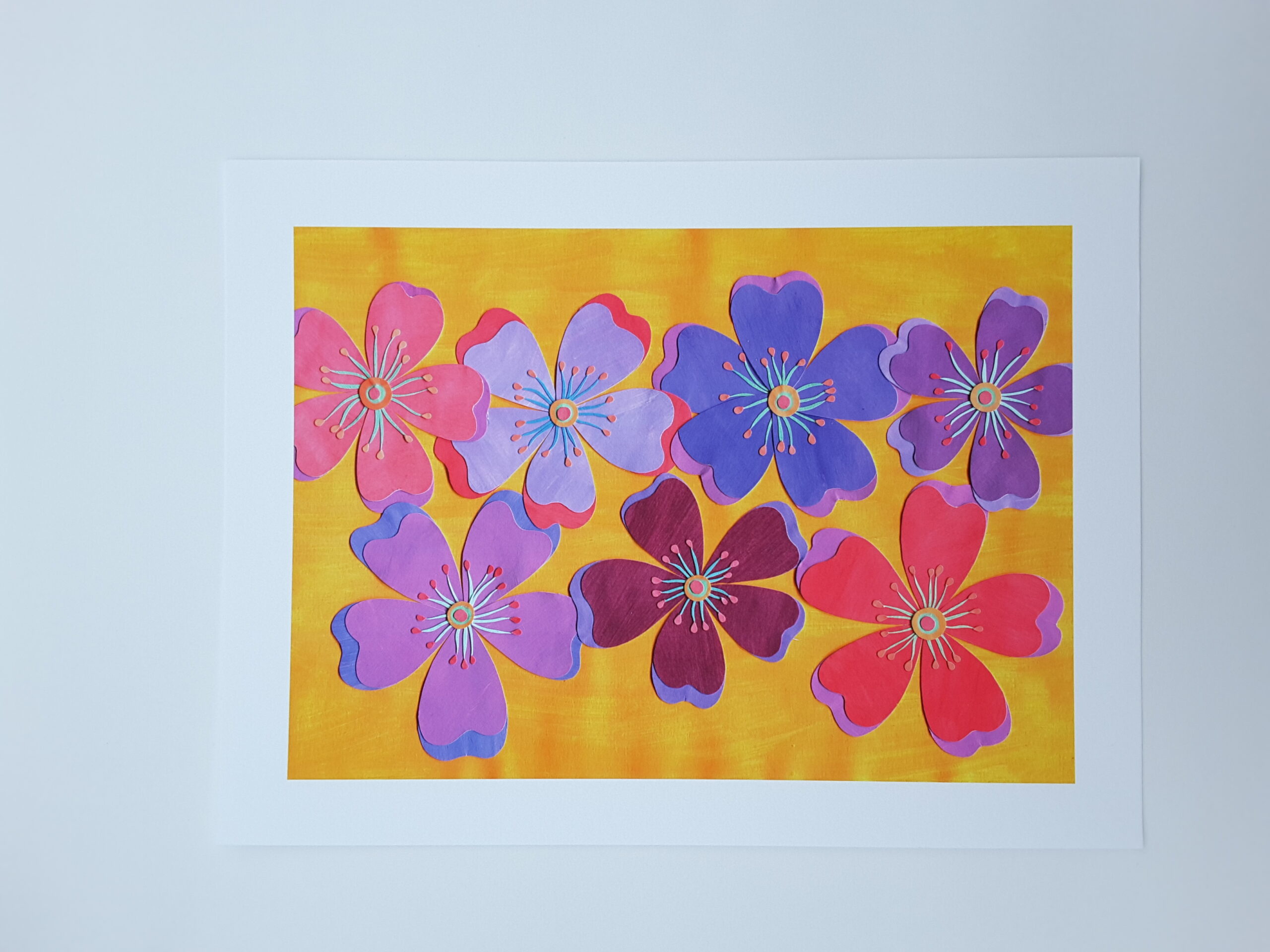 Here is a great quality signed giclee print of my original collage, Hot Flowers.